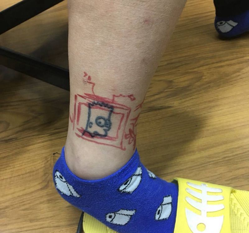 【The Simpsons】 脚环纹身图片_成品手稿腿部脚部清新欧美原创人物纹身图案