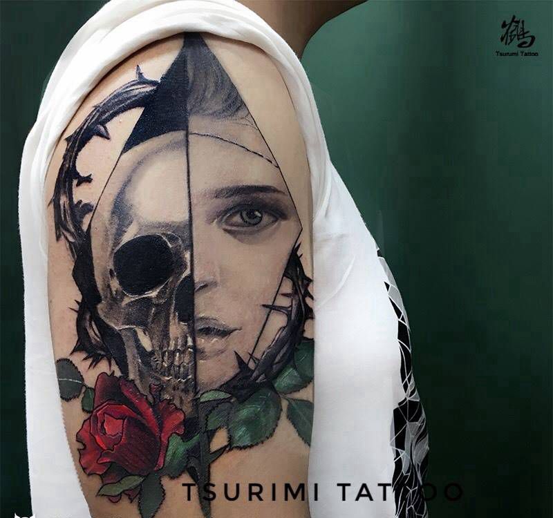 当前位置: 首页 >北京市纹身店-鹤见刺青処纹身图案>【Half】纹身图片_成品手臂欧美肖像原创宗教植物写实人物纹身图案