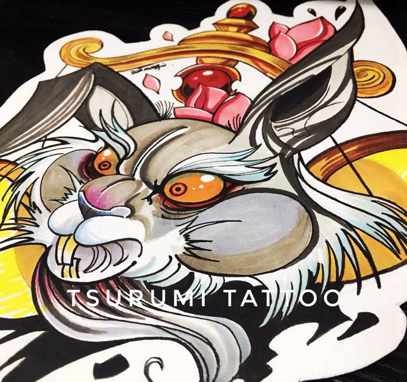 当前位置: 首页 >北京市纹身店-鹤见刺青処纹身图案>愤怒的兔子天平纹身图片_成品手稿手臂肖像动物原创宗教纹身图案