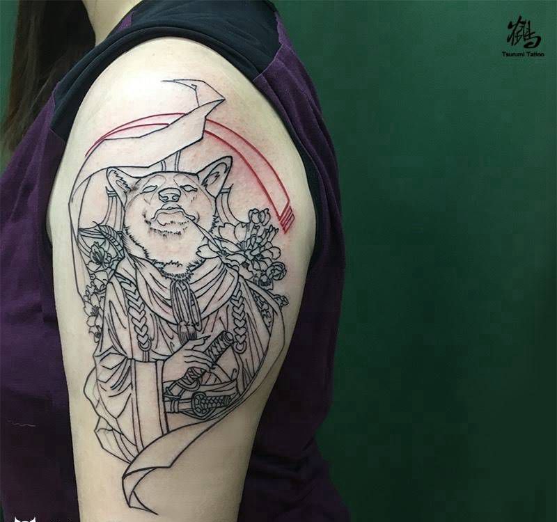 当前位置: 首页 >北京市纹身店-鹤见刺青処纹身图案>原创【犬神】线条纹身图片_手稿成品手臂原创鬼神动物纹身图案