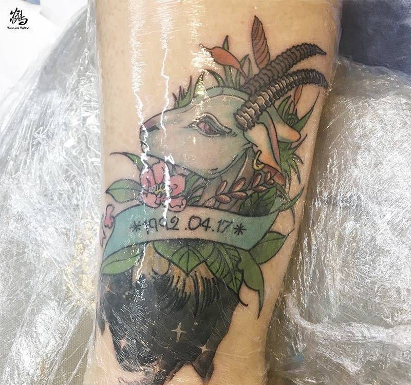 当前位置: 首页 >北京市纹身店-鹤见刺青処纹身图案>原创【遮盖羊咩咩】纹身图片_成品手稿腿部清新植物动物原创纹身图案