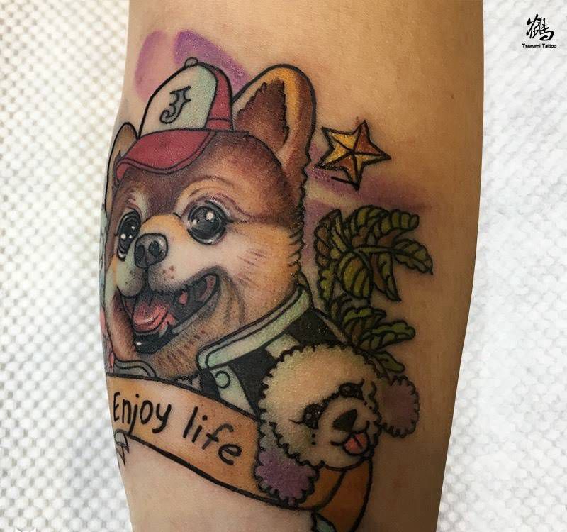 当前位置: 首页 >北京市纹身店-鹤见刺青処纹身图案>原创【博美】纹身图片_成品手稿手臂清新肖像动物原创植物纹身图案