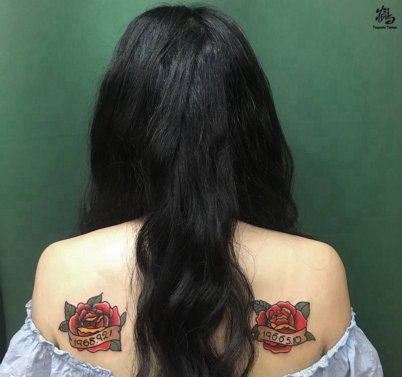 【遮盖OldSchool玫瑰】纹身图片_成品手稿背部肩部传统欧美植物原创纹身图案