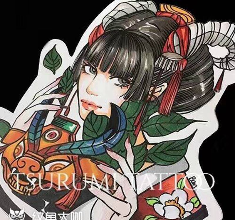 当前位置: 首页 >北京市纹身店-鹤见刺青処纹身图案>【羊女】旧纹身修改添加纹身图片_成品手稿腿部脚部肖像原创人物鬼神纹身图案
