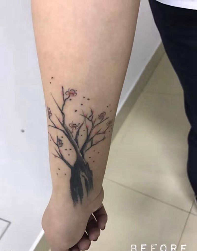 当前位置: 首页 >北京市纹身店-鹤见刺青処纹身图案>原创遮盖小樱纹身图片_成品手臂清新肖像原创人物动物纹身图案