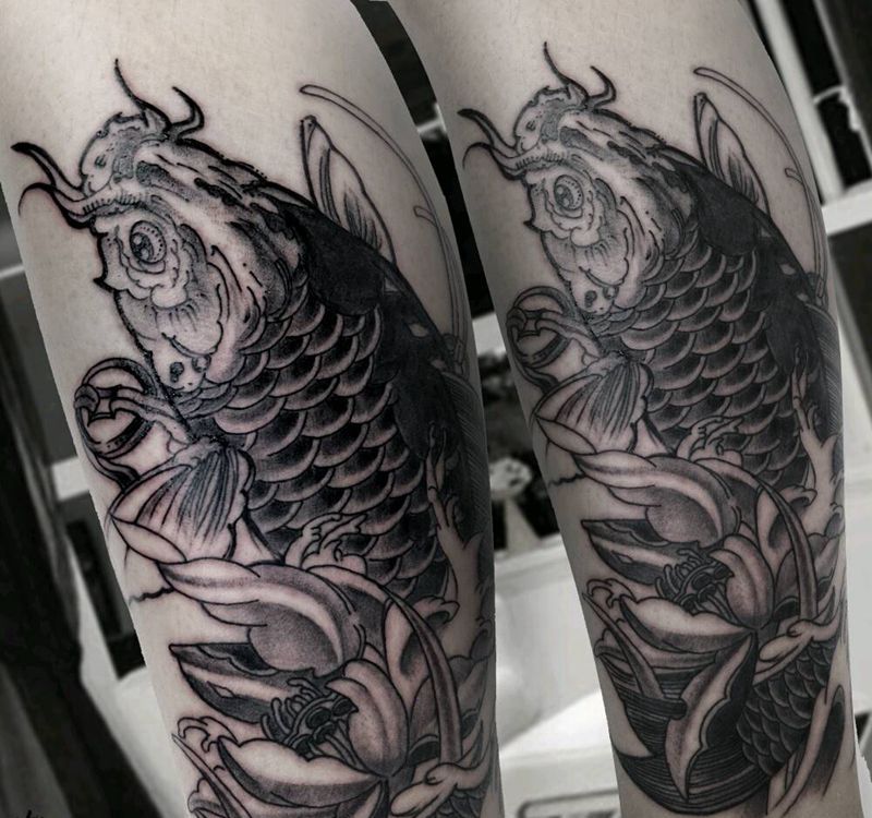 【鲤鱼】纹身图片_腿部传统动物原创成品纹身图案