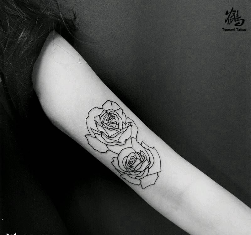 【寡线条玫瑰】纹身图片_手臂清新原创成品手稿纹身图案