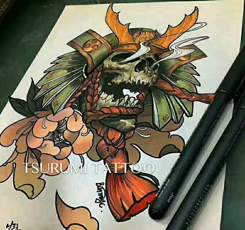 原创遮盖【鬼武士】纹身图片_手臂欧美肖像写实鬼神宗教原创成品手稿纹身图案