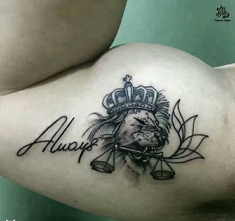 鹤见原创【狮子座】纹身图片_手臂传统清新动物原创成品纹身图案