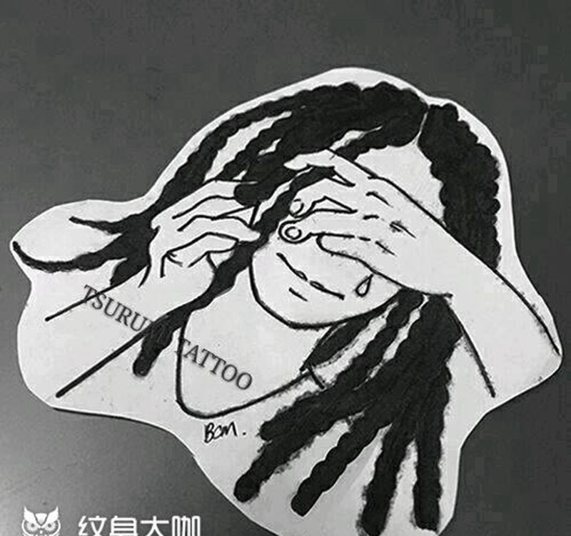 鹤见原创【捂住眼睛和耳朵】纹身图片_手臂清新人物原创成品手稿纹身图案