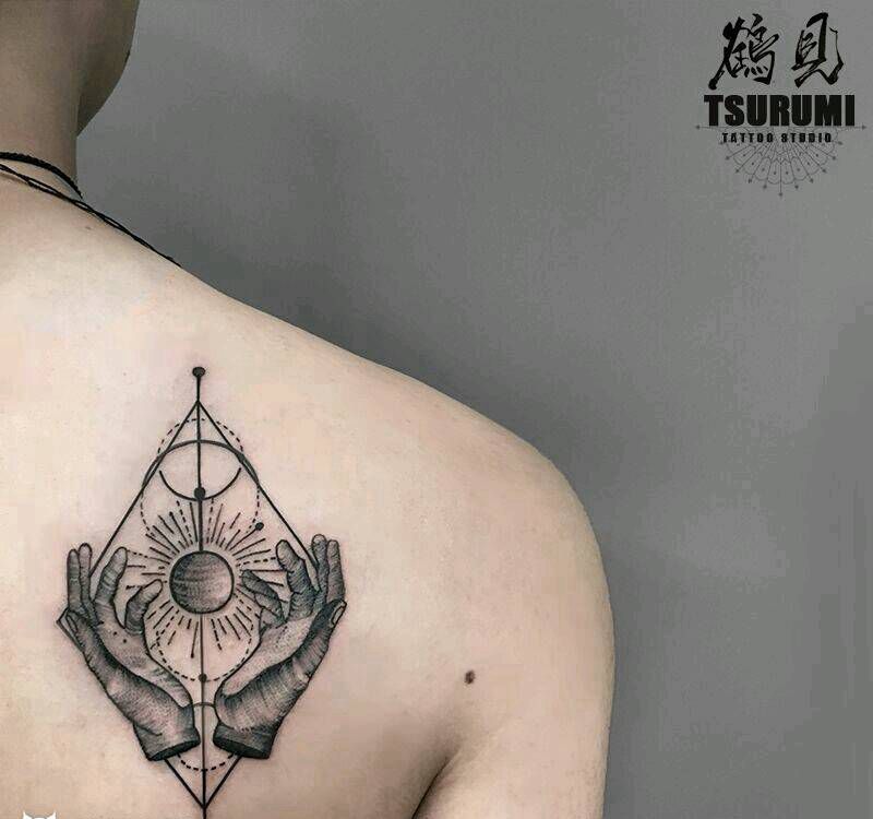 当前位置: 首页 >北京市纹身店-鹤见刺青処纹身图案>鹤见原创私人定制刺青【太阳】纹身图片_背部清新几何原创成品纹身图案