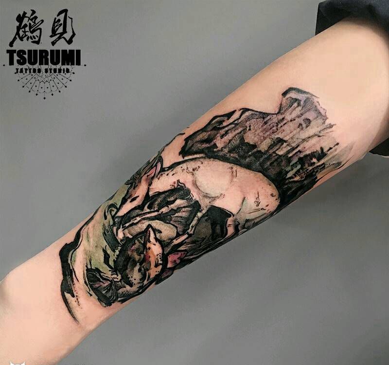 当前位置: 首页 >北京市纹身店-鹤见刺青処纹身图案>鹤见原创私人定制刺青【鹿饮】纹身图片_手臂习俗清新国画动物原创成品纹身图案