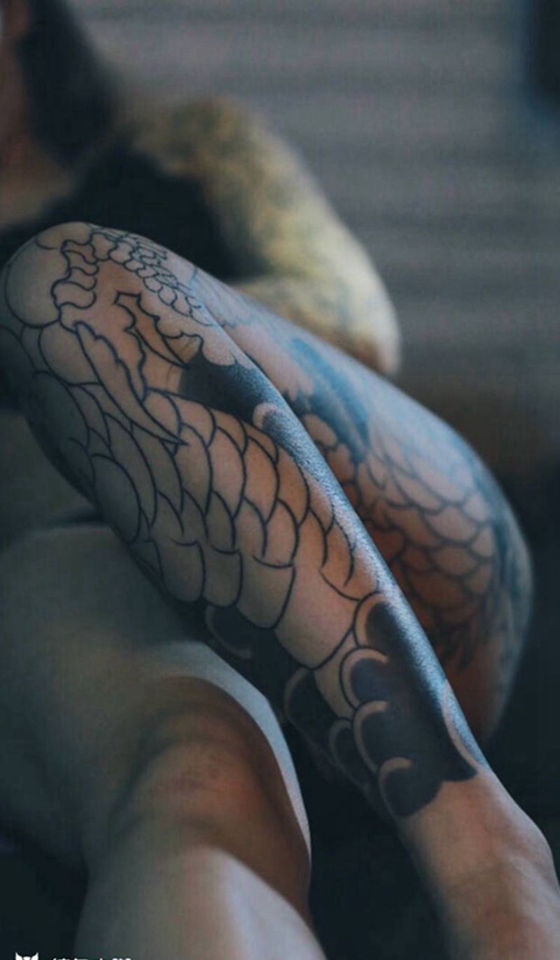 • T网红王老大花腿龙纹身图片_腿部新传统纹身图案