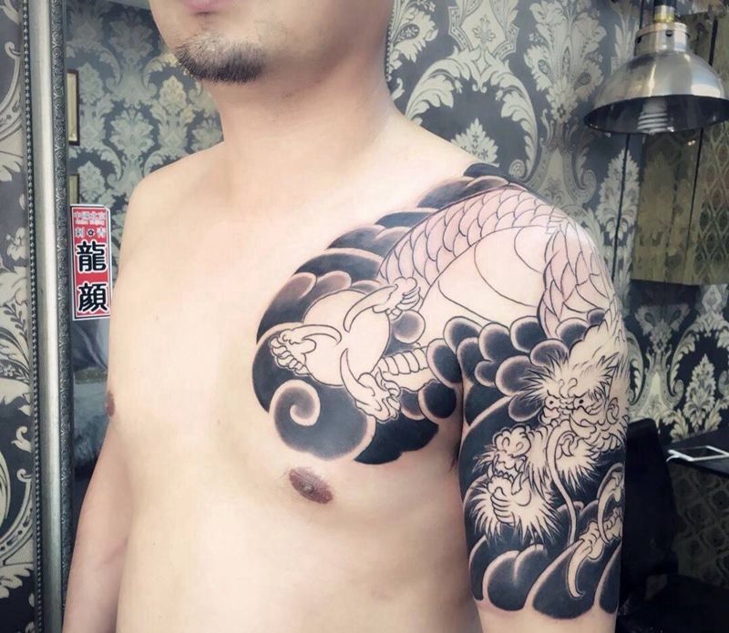 • T云龙九郎纹身图片_背部老传统云龙九郎纹身图案