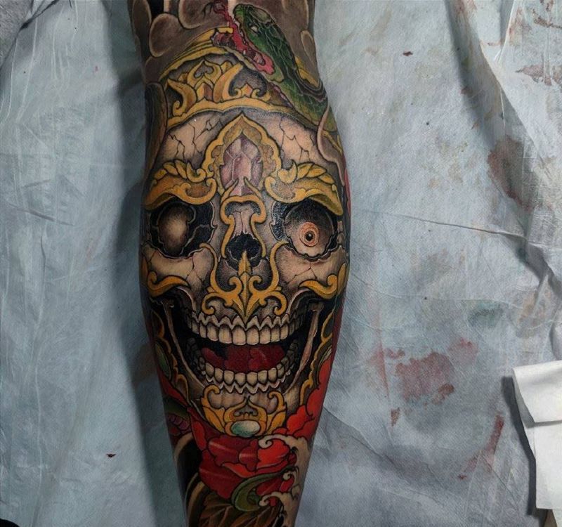 当前位置: 首页 >北京市纹身店-北京子时纹艺刺青工作室纹身图案>嘎巴拉纹身图片_腿部新传统纹身图案