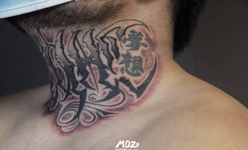 当前位置: 首页 >北京市纹身店-MDZ STORE流行文化体验店纹身图案>FIGHT Chicano纹身图片_成品颈部欧美其卡诺纹身图案