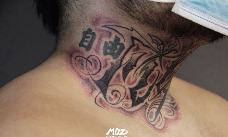 当前位置: 首页 >北京市纹身店-MDZ STORE流行文化体验店纹身图案>FIGHT Chicano纹身图片_成品颈部欧美其卡诺纹身图案