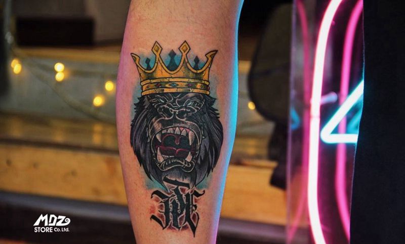 金刚纹身图片_成品腿部欧美动物原创纹身图案