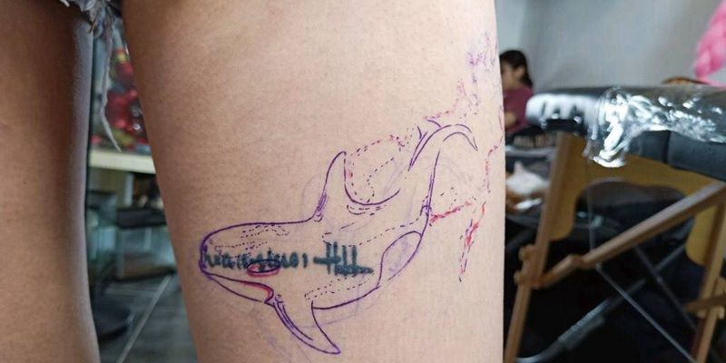 鲸鱼纹身图片_腿部New School遮盖纹身图案
