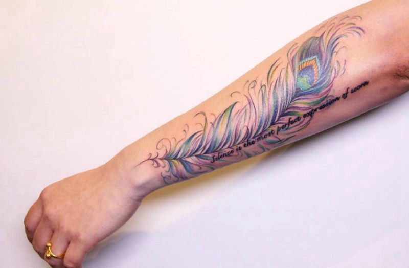 当前位置: 首页 >北京市纹身店-MDZ STORE流行文化体验店纹身图案>凤尾纹身图片_手臂水彩纹身图案