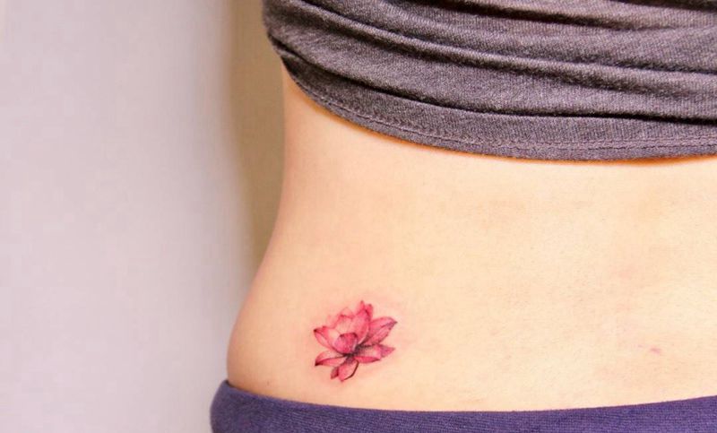 疤痕遮盖纹身图片_腰部水彩中国风纹身图案