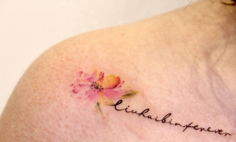当前位置: 首页 >北京市纹身店-MDZ STORE流行文化体验店纹身图案>英文+花纹身图片_颈部水彩文字纹身图案