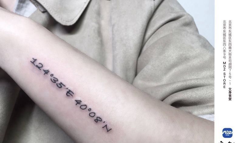 当前位置: 首页 >北京市纹身店-MDZ STORE流行文化体验店纹身图案>经纬度纹身图片_手臂文字纹身图案
