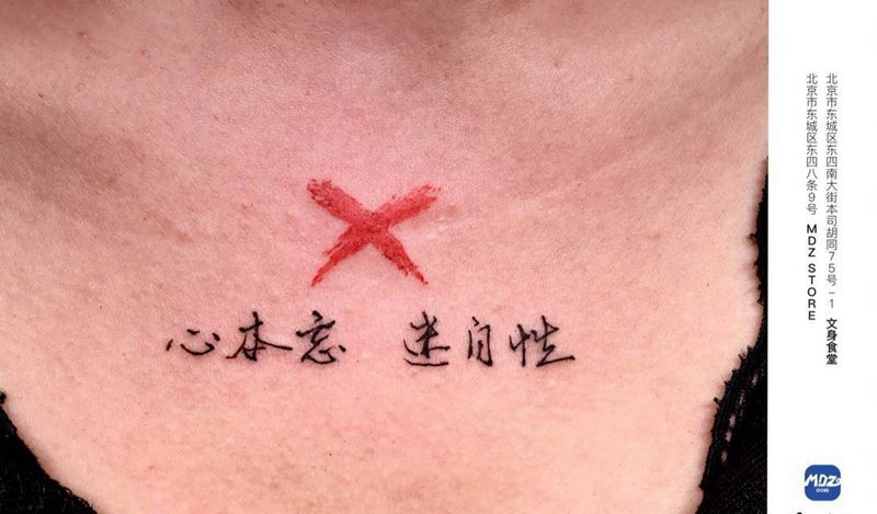 当前位置: 首页 >北京市纹身店-MDZ STORE流行文化体验店纹身图案>心本忘 迷自信纹身图片_胸部文字纹身图案