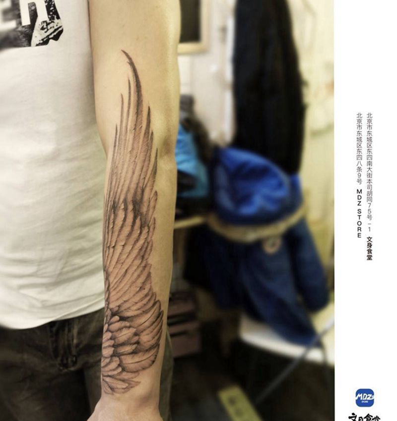 当前位置: 首页 >北京市纹身店-MDZ STORE流行文化体验店纹身图案>翅膀纹身图片_手臂写实纹身图案