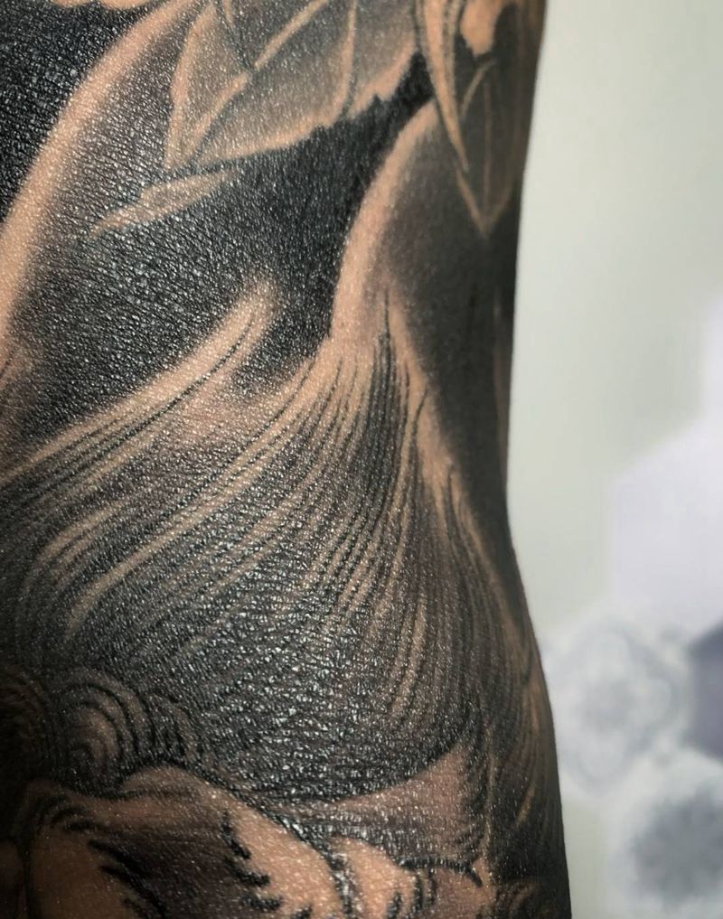 • T网红王老大花腿龙纹身图片_腿部新传统纹身图案