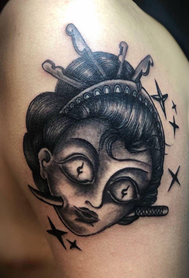 School生首纹身图片_手臂Old School艺伎纹身图案