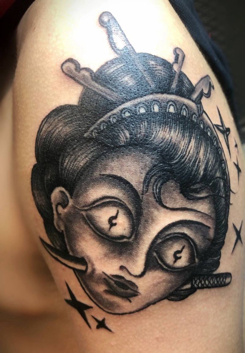 School生首纹身图片_手臂Old School艺伎纹身图案