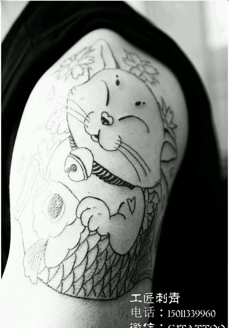 招财猫纹身图片_手臂传统纹身图案