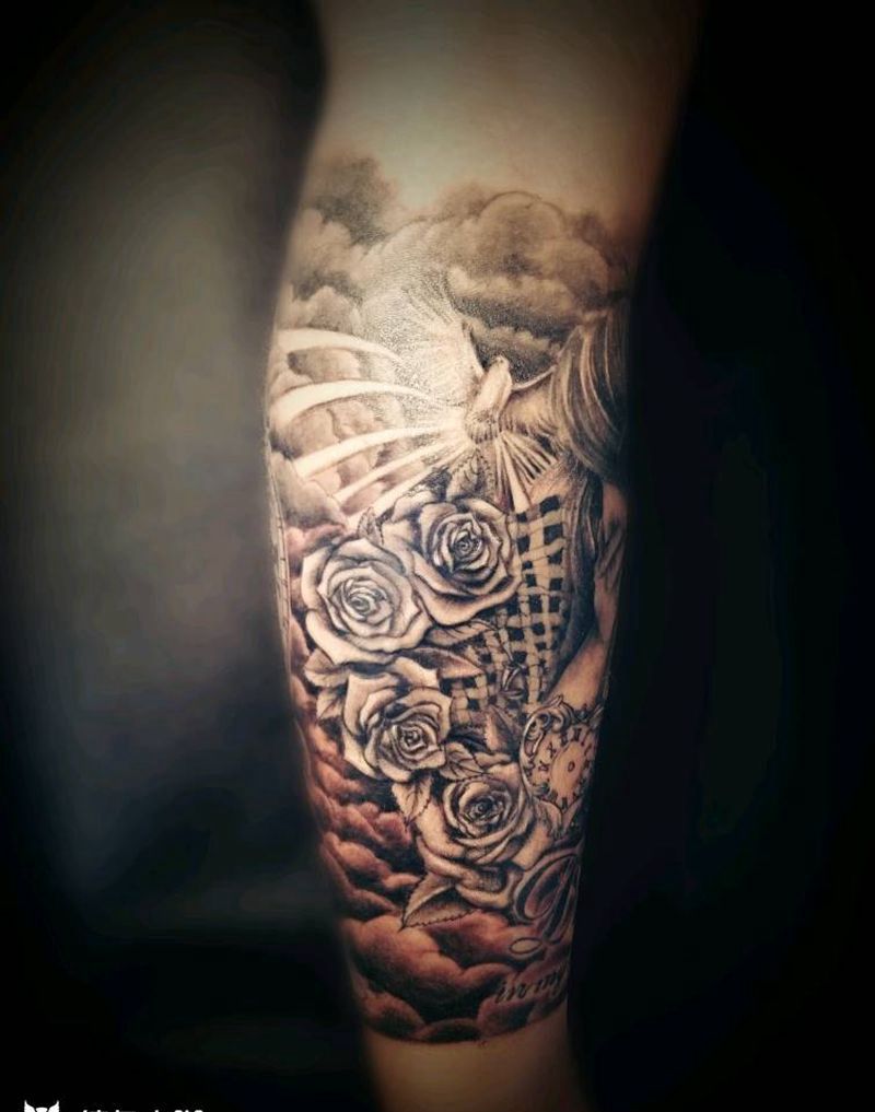 梦幻女孩纹身图片_腿部欧美肖像写实原创成品纹身图案