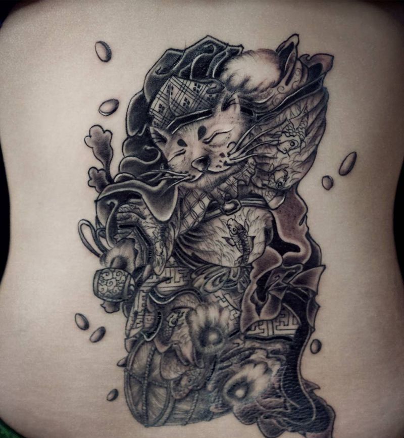 当前位置: 首页 >北京市纹身店-工匠刺青纹身图案>招财猫 原创设计纹身图片_成品人物动物传统腰部纹身图案