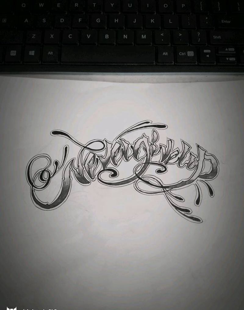 当前位置: 首页 >北京市纹身店-工匠刺青纹身图案>原创设计 不放弃纹身图片_欧美字符图腾原创手稿纹身图案