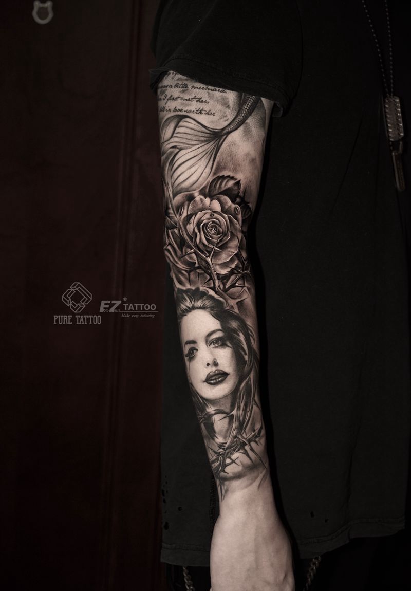 花臂肖像纹身图片_手臂欧美写实花臂肖像纹身图案