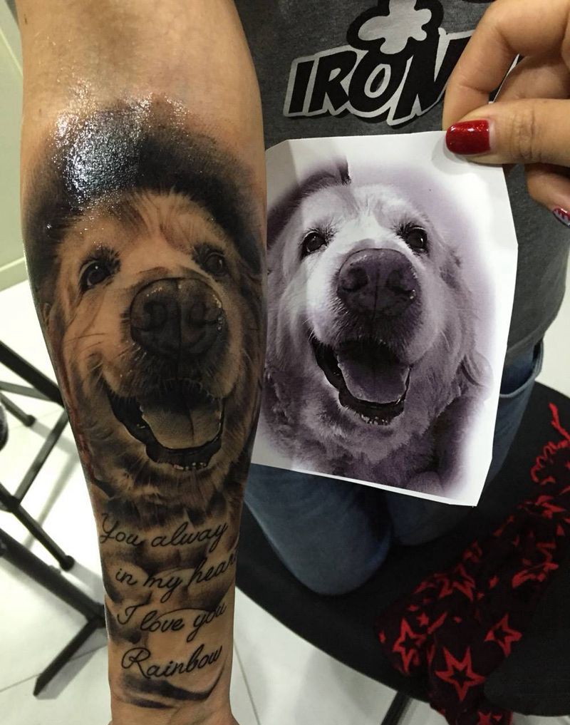 狗狗纹身图片_成品手臂写实欧美原创动物纹身图案