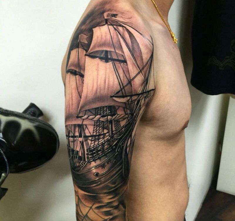 祝各位新年一帆风顺纹身图片_成品手臂欧美写实原创静物纹身图案