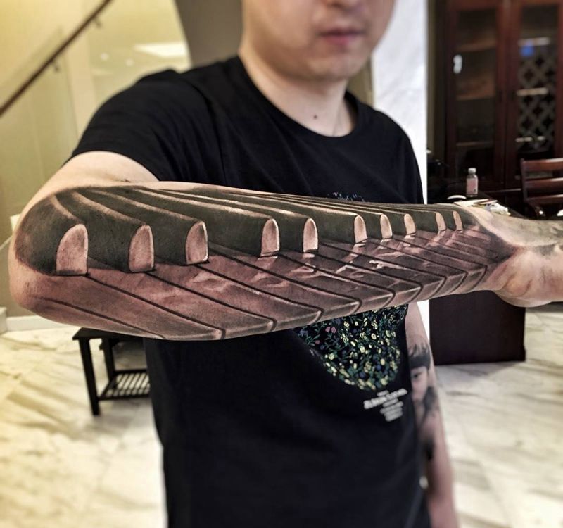当前位置: 首页 >北京市纹身店-纯刺青纹身图案>钢琴纹身图片_欧美原创写实手臂成品纹身图案