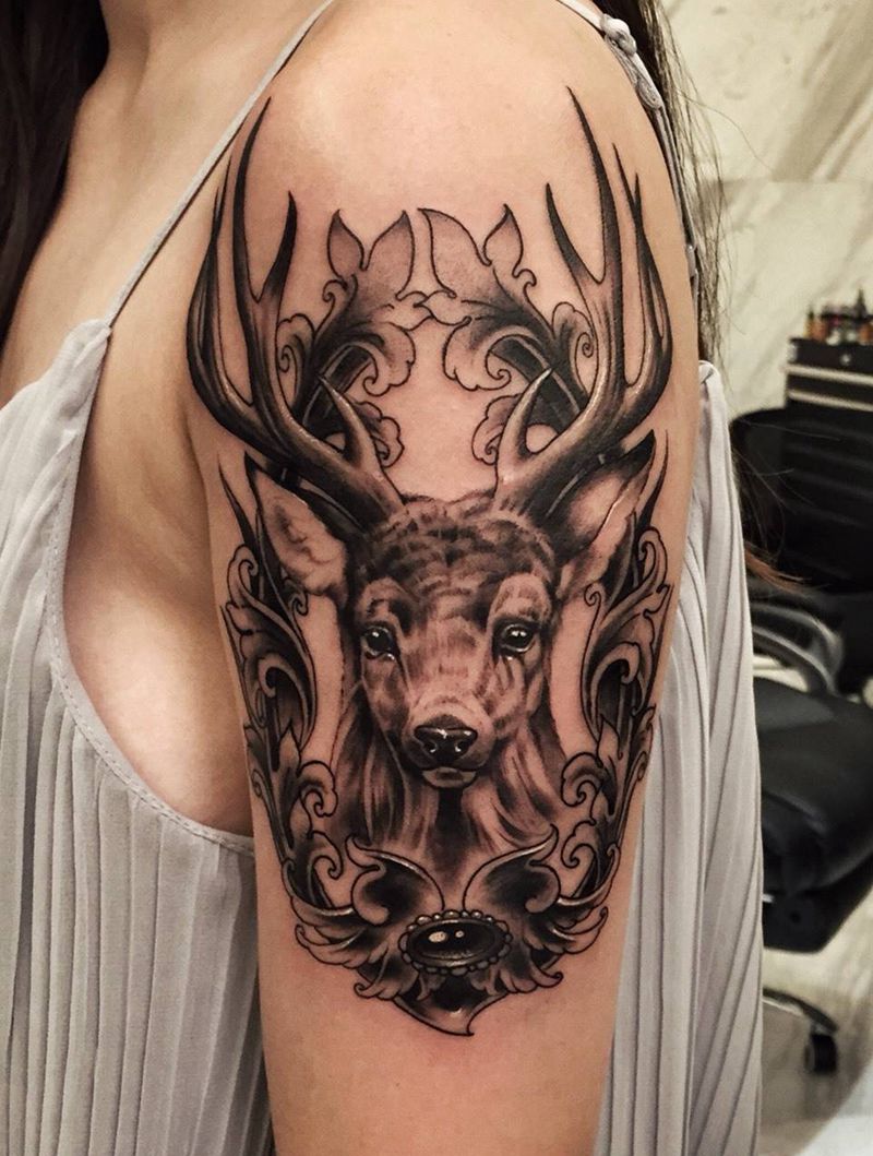 当前位置: 首页 >北京市纹身店-纯刺青纹身图案>鹿纹身图片_原创手臂清新植物动物成品纹身图案
