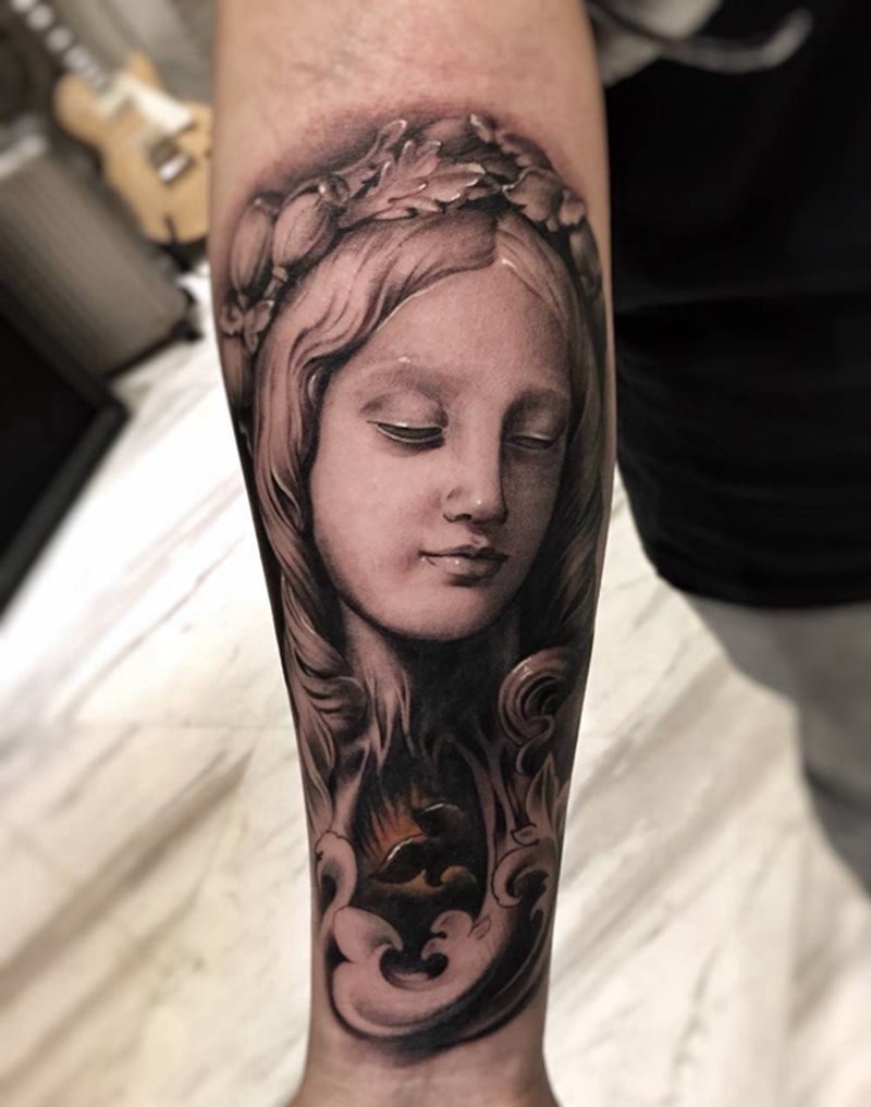 遮盖纹身图片_成品手臂写实欧美肖像原创人物纹身图案