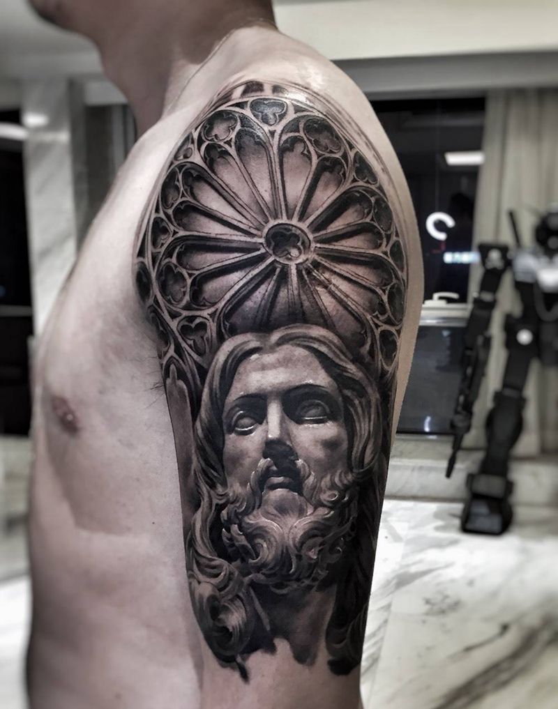 耶稣纹身图片_成品写实欧美肖像原创手臂纹身图案
