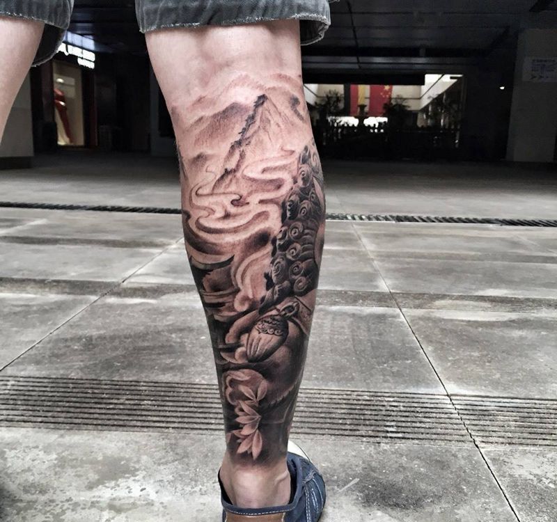当前位置: 首页 >北京市纹身店-纯刺青纹身图案>我的作品纹身图片_成品腿部写实传统国画原创纹身图案
