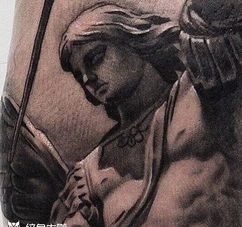 当前位置: 首页 >北京市纹身店-纯刺青纹身图案>米迦勒纹身图片_成品习俗写实欧美原创人物腿部纹身图案