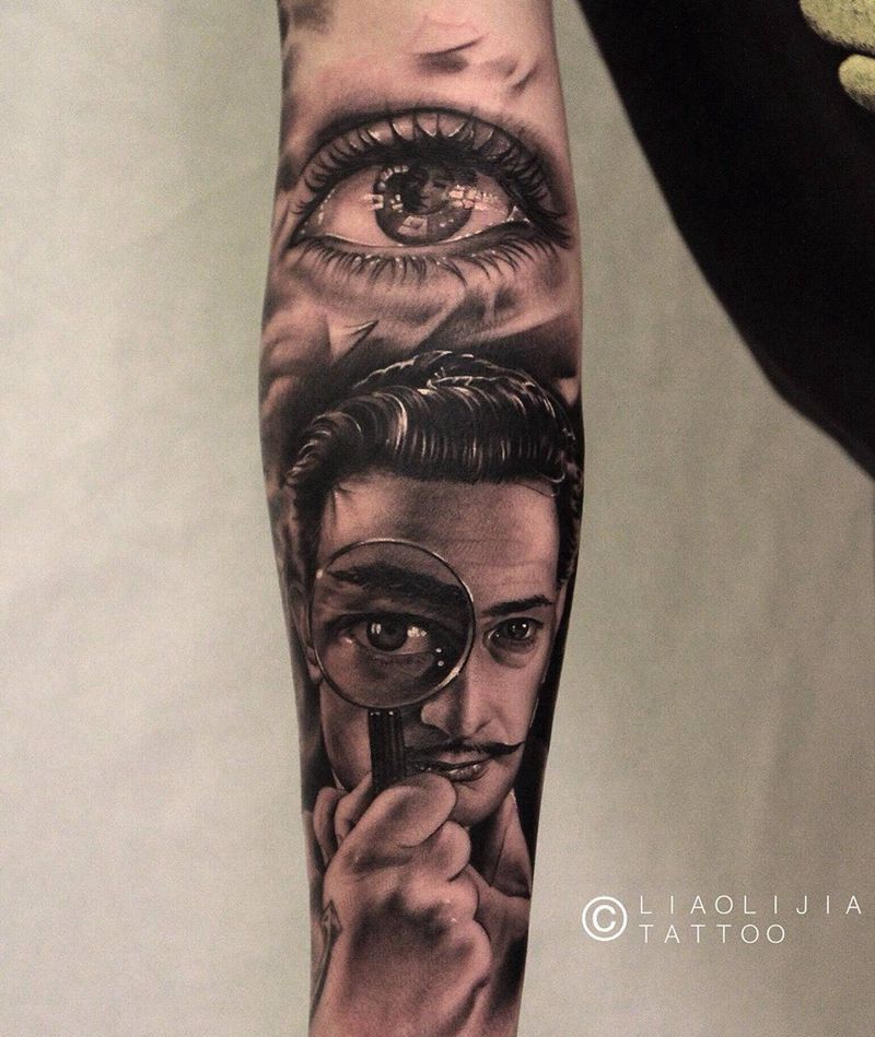 达利纹身图片_成品手臂写实肖像欧美原创人物纹身图案