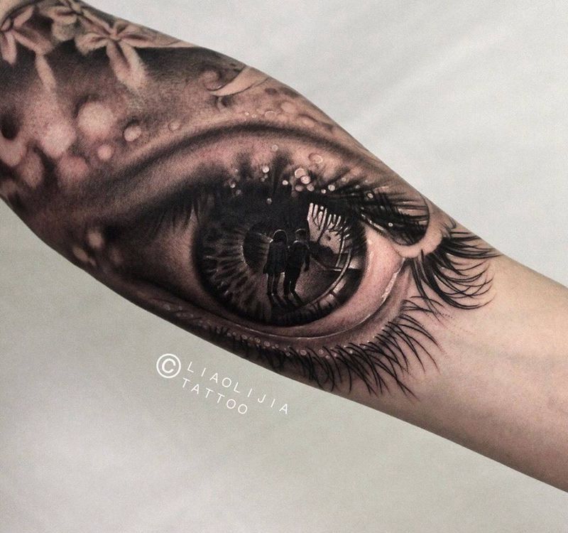 眼睛里的照片纹身图片_成品欧美原创手臂写实肖像纹身图案