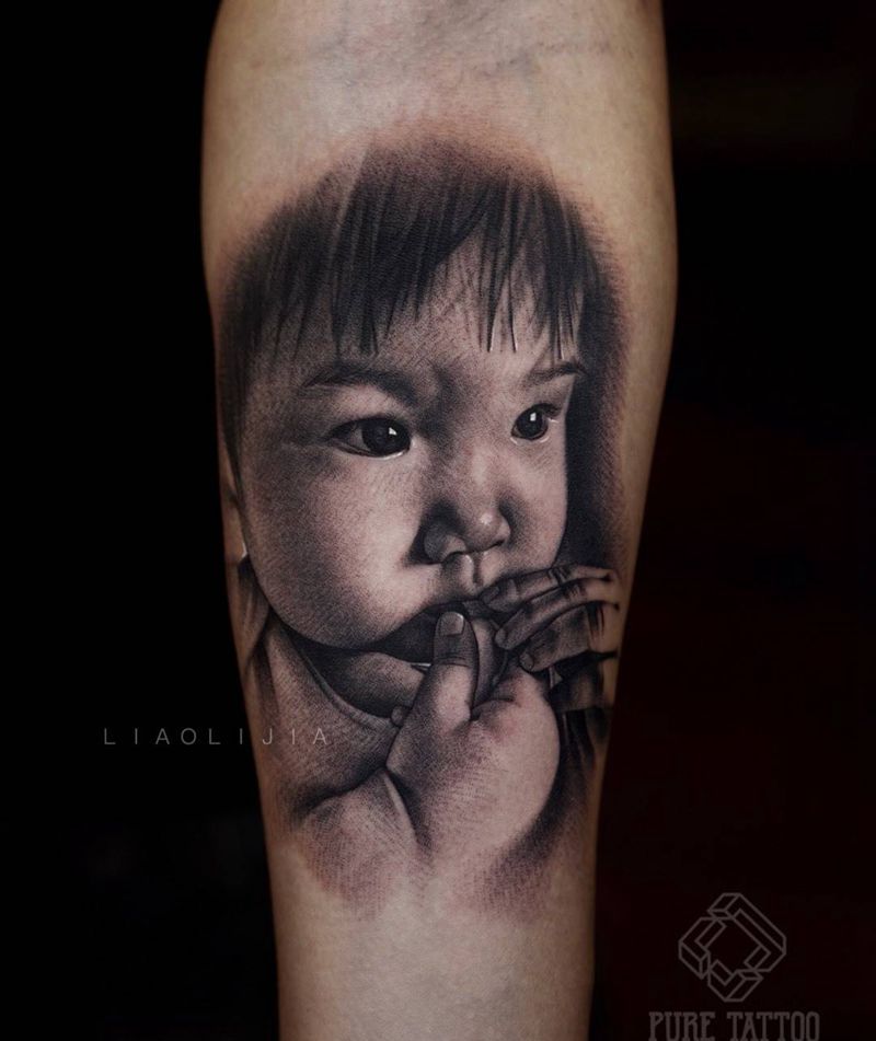 肖像作品纹身图片_原创人物写实手臂成品纹身图案