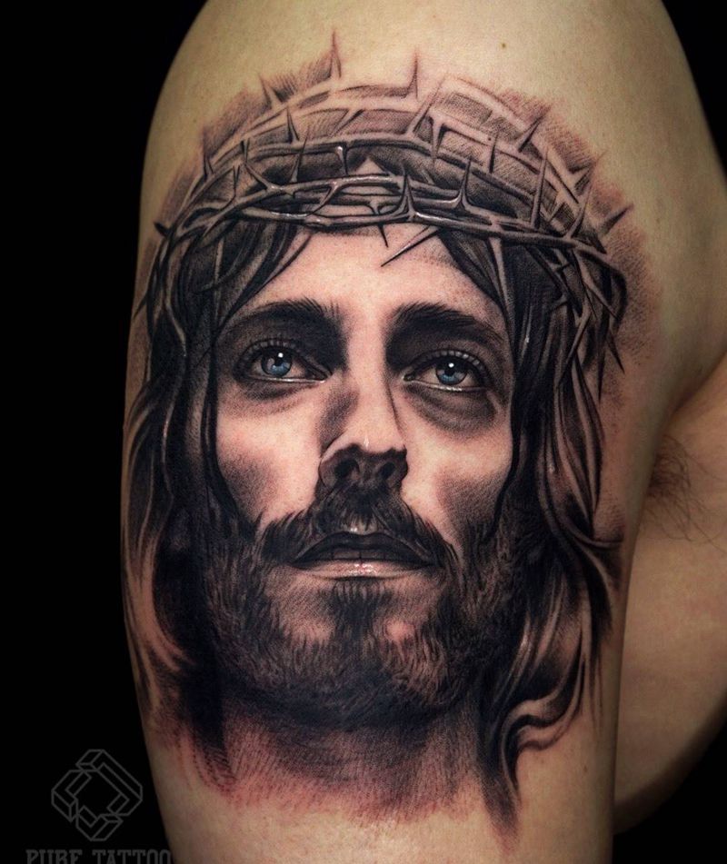 当前位置: 首页 >北京市纹身店-纯刺青纹身图案>耶稣纹身图片_成品人物手臂欧美肖像宗教纹身图案