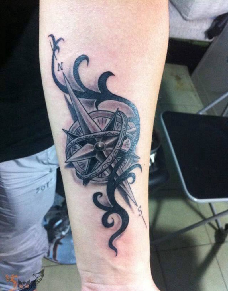 指南针纹身图片_欧美习俗传统写实肖像清新几何字符静物手臂纹身图案